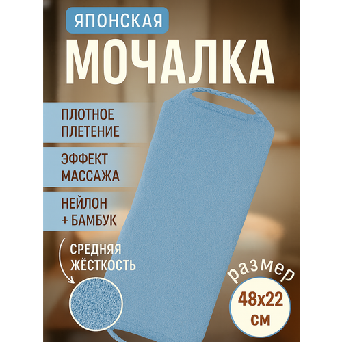 НАЙТИ ВЫГОДНЕЕ - Мочалка японская, с ручками, голубая, антицеллюлитная, массажная