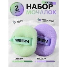 НАЙТИ ВЫГОДНЕЕ - Мочалка для душа Resin, для тела, набор 2шт. зеленая / фиолетовая
