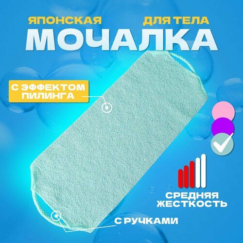 НАЙТИ ВЫГОДНЕЕ - Мочалка для тела Японская жесткая с ручками для ванной, душа, бани, массажная, антицеллюлитная мультиколор