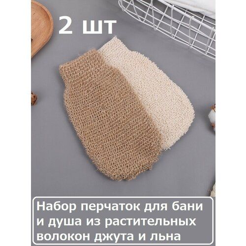 НАЙТИ ВЫГОДНЕЕ - Варежки-мочалки из джута и льна, 2 шт.