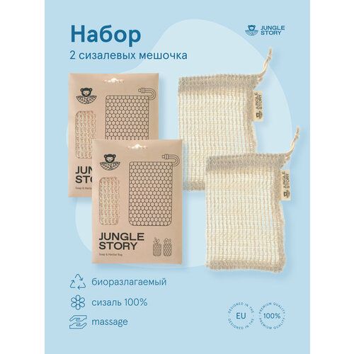 Сизалевый мочалка-мешок набор 2 штуки Jungle Story - это идеальный способ использовать слишком маленькие куски мыла во время принятия душа и заварить травяные ванны наполните мешочек травами или мылом, завяжите его и поместите в ванну с теплой водой. Через несколько минут вы получите мягкую, гладкую и очищенную кожу, готовую к дальнейшему уходу.