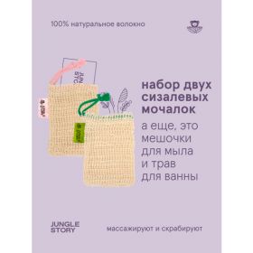 Сизалевый мочалка-мешок набор 2 штуки Jungle Story - это идеальный способ использовать слишком маленькие куски мыла во время принятия душа и заварить травяные ванны наполните мешочек травами или мылом, завяжите его и поместите в ванну с теплой водой. Через несколько минут вы получите мягкую, гладкую и очищенную кожу, готовую к дальнейшему уходу.
