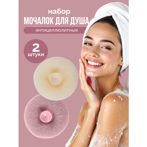 НАЙТИ ВЫГОДНЕЕ - Мочалки антицеллюлитные на присосках, кремовая и сиреневая, 2 штуки