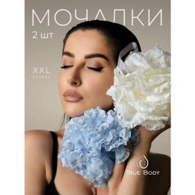 НАЙТИ ВЫГОДНЕЕ - Мочалка для тела, для душа женская, форма шар, мягкие, размер XXL, белая, голубая