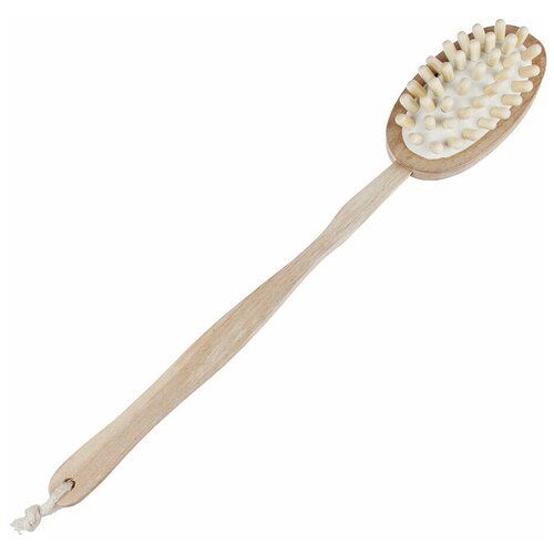 НАЙТИ ВЫГОДНЕЕ - Щетка для тела BEAUTY GALLERY двойная с натуральной щетиной и массажером на деревянной ручке, 42см