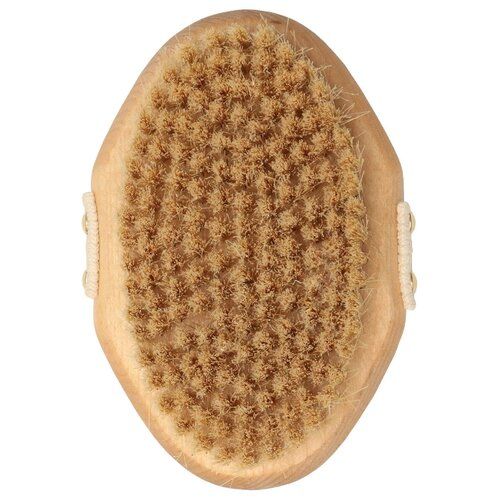 Щётка с натуральной щетиной средней жёсткости (кабан) предназначена для сухого массажа тела. Процедура интенсивно отшелушивает омертвевшие частички эпидермиса, улучшает кожное дыхание, стимулирует выработку коллагена, усиливает кровообращение в мелких сосудах и лимфоток.