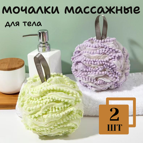 НАЙТИ ВЫГОДНЕЕ - Массажная мочалка шар для тела комплект из 2 штук (зеленая, сиреневая)