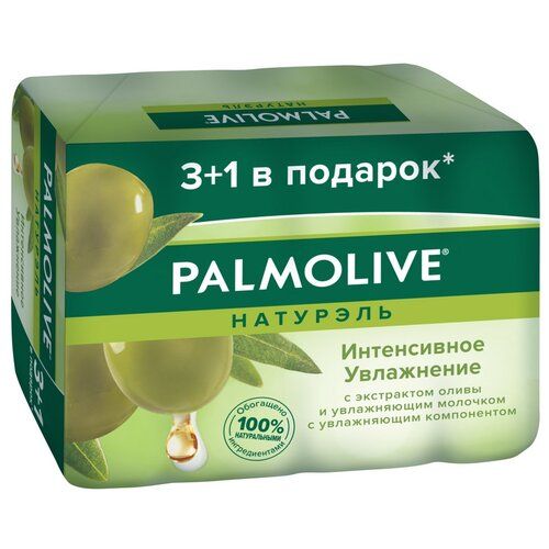 НАЙТИ ВЫГОДНЕЕ - Palmolive Мыло кусковое Натурэль Интенсивное увлажнение с экстрактом оливы и увлажняющим молочком олива, 4 шт., 90 г
