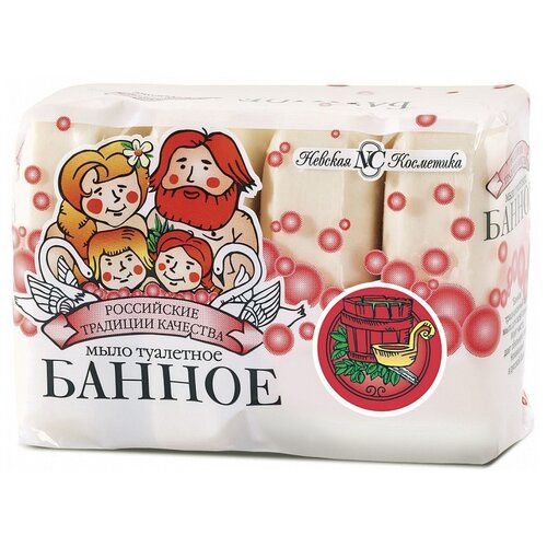 НАЙТИ ВЫГОДНЕЕ - Невская Косметика Мыло туалетное Банное без аромата, 4 шт., 100 г