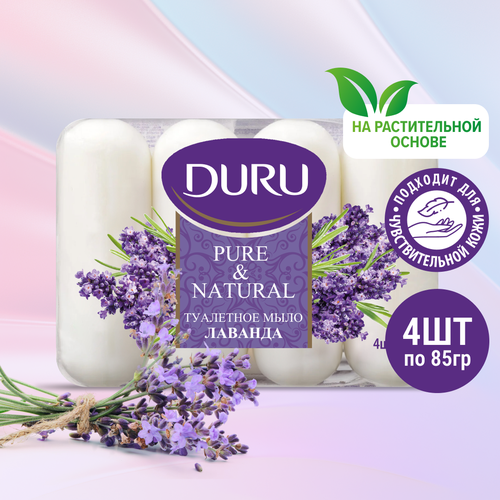 НАЙТИ ВЫГОДНЕЕ - DURU Мыло кусковое Pure & natural Лаванда цветы, 4 шт., 85 г