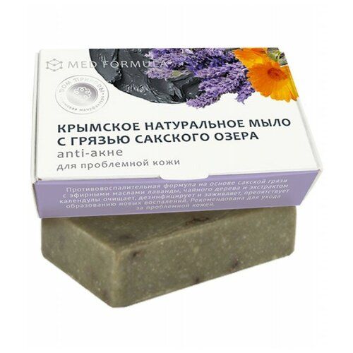 MED-formula «Anti-акне» содержит лечебную грязь Сакского озера, дополненную сбалансированным комплексом природных компонентов, разработанным для ухода за проблемной кожей. Репейное масло известно как мощное средство против угревой сыпи, масло расторопши повышает защитные функции кожи. Экстракт календулы обладает противовоспалительным свойством. Экстракт эвкалипта служит прекрасным антисептиком, способствует заживлению повреждений кожи. Экстракт стевии угнетает рост бактерий, вызывающих воспаление сальных желез и образование угрей, возвращает коже мягкость. Эфирные масла лаванды, чайного дерева и эвкалипта обладают выраженным антибактериальным и успокаивающим действием.