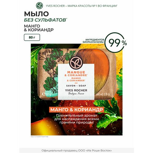 НАЙТИ ВЫГОДНЕЕ - Твердое мыло Yves Rocher Манго и Кориандр, для рук, без сульфатов, 80 г