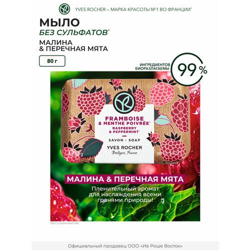 НАЙТИ ВЫГОДНЕЕ - Мыло Yves Rocher Малина и мята, для рук, без сульфатов, 80 г