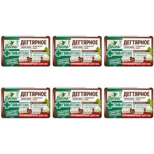 НАЙТИ ВЫГОДНЕЕ - ПКК Весна Главаптека мыло дегтярное туалетное твердое кусковое 6 шт по 90 г / Мыло для рук, для лица, для тела