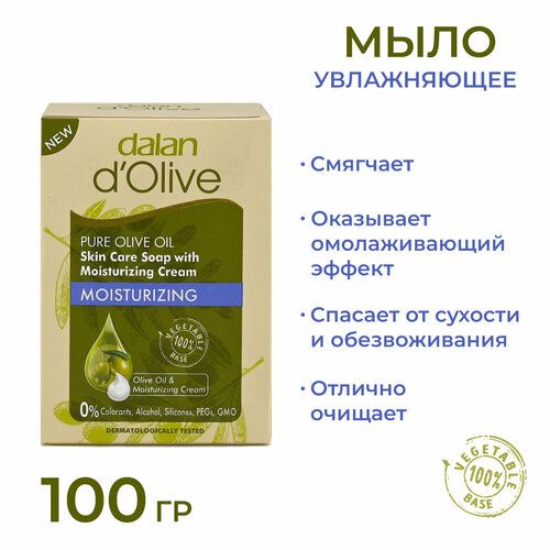 НАЙТИ ВЫГОДНЕЕ - Туалетное мыло Dalan d'Olive с маслом Оливы и увлажняющим кремом, турецкое, твердое, кусковое натуральное, 100 г.