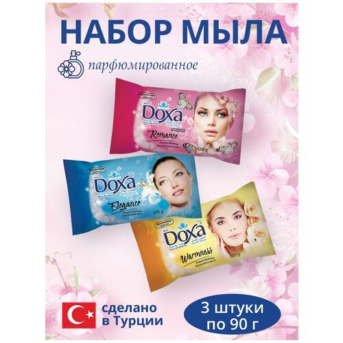 Набор мыла DOXA "Женский Микс" представляет собой три упаковки по 90 грамм каждая. Это твердое туалетное мыло, которое обеспечивает эффективное очищение кожи, сохраняя ее мягкость и красоту.