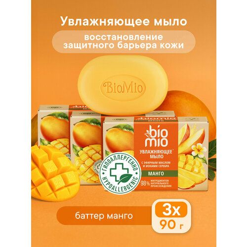 НАЙТИ ВЫГОДНЕЕ - BioMio Натуральное веганское мыло с баттером манго, 90 г, 3 шт.