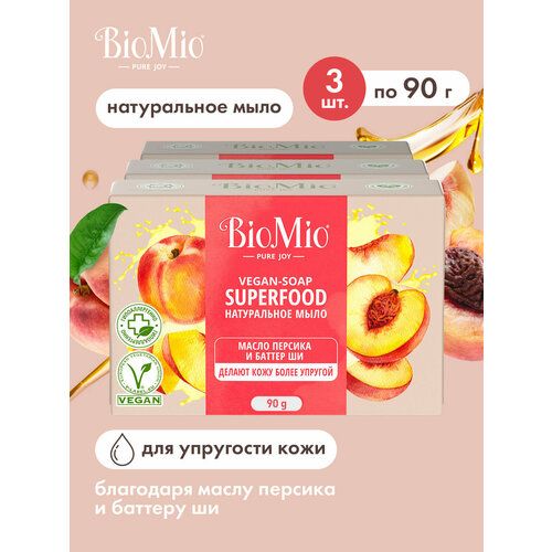 BioMio. BIO-SOAP SUPERFOOD Натуральное мыло с маслом Персика и баттером Ши / BioMio BIO-SOAP SUPERFOOD Natural bar soap with Peach oil& Shea butter, 90 г. (3шт)