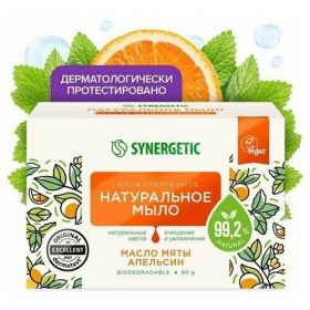 НАЙТИ ВЫГОДНЕЕ - SYNERGETIC Мыло туалетное Масло мяты и апельсин, гипоаллергенное, 90 г