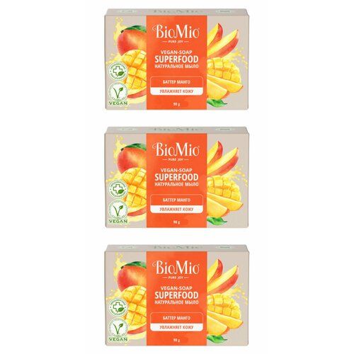 НАЙТИ ВЫГОДНЕЕ - BioMio Твердое мыло Vegan-Soap Superfood Баттер манго, 90 г, 3 шт