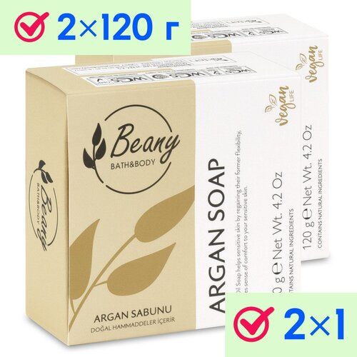 НАЙТИ ВЫГОДНЕЕ - Мыло Beany твердое натуральное турецкое Argan Oil Soap с аргановым маслом 2 шт. по 120 г
