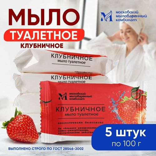 НАЙТИ ВЫГОДНЕЕ - Мыло туалетное Клубничное 100 гр. 5 шт. в упаковке. Московский мыловаренный комбинат.