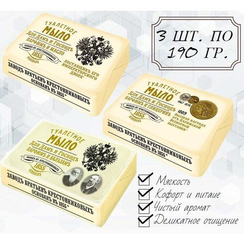 НАЙТИ ВЫГОДНЕЕ - Набор туалетного мыло Для Дамъ и Господъ 3 шт. по 190 гр: Парфюм и Глицерин/Масло/Бальзам