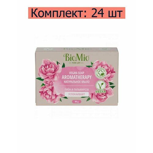 НАЙТИ ВЫГОДНЕЕ - Мыло натуральное BioMio Vegan-Soap Aromatherapy Пион и пальмароза, 90 г, 24 шт