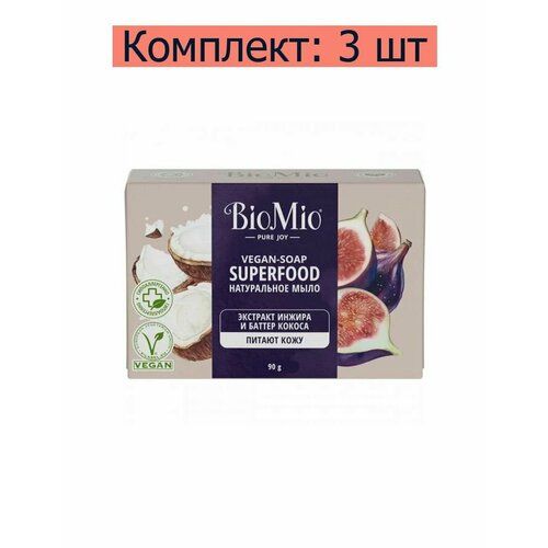 НАЙТИ ВЫГОДНЕЕ - Мыло натуральное BioMio Vegan-Soap Superfood Экстракт инжира и баттер кокоса, 90 г, 3 шт