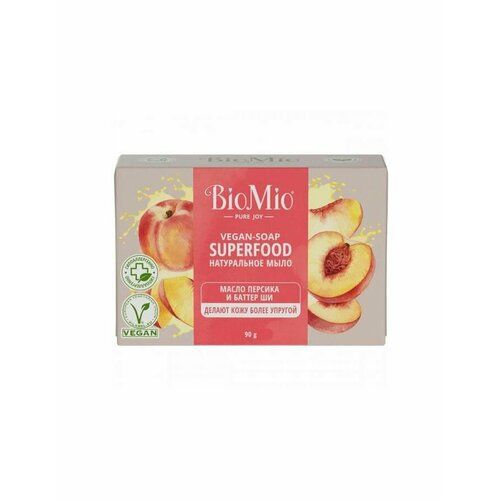 НАЙТИ ВЫГОДНЕЕ - Мыло натуральное BioMio Vegan-Soap Superfood Масло персика и баттер ши, 90 г, 1 шт