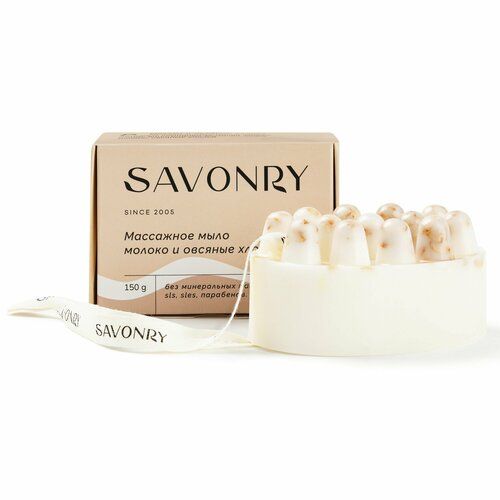 НАЙТИ ВЫГОДНЕЕ - SAVONRY Массажное мыло молоко и овсяные хлопья, 150г /ручная работа /с натуральными маслами и экстрактами