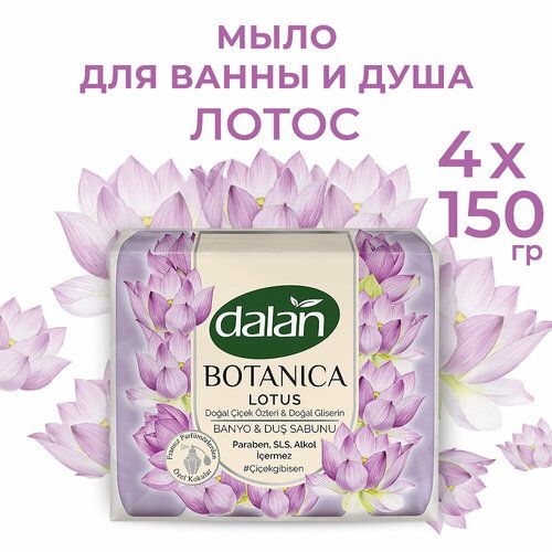 НАЙТИ ВЫГОДНЕЕ - Мыло туалетное твердое для рук DALAN Botanica Парфюмированное Лотос, банное , набор 4 шт. по 150 гр.