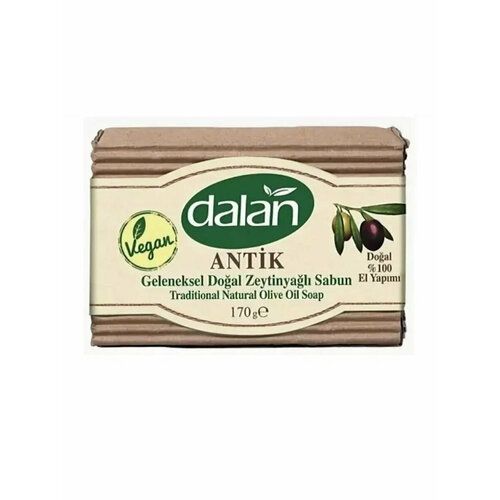 Твердое мыло Dalan Antik с оливковым маслом подходит для ежедневного использования и может быть использовано для очищения кожи рук, ног и тела.