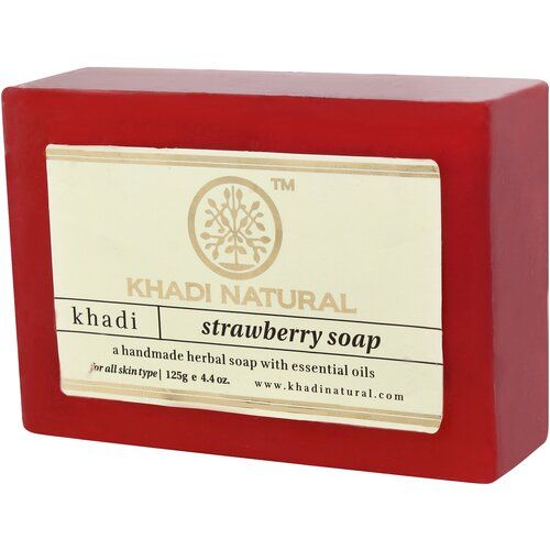 STRAWBERRY Handmade Herbal Soap With Essential Oils, Khadi Natural увлажняет кожу и улучшает её состояние. Аромат мыла поднимает настроение, бодрит и освежает, наполняет энергией на целый день.