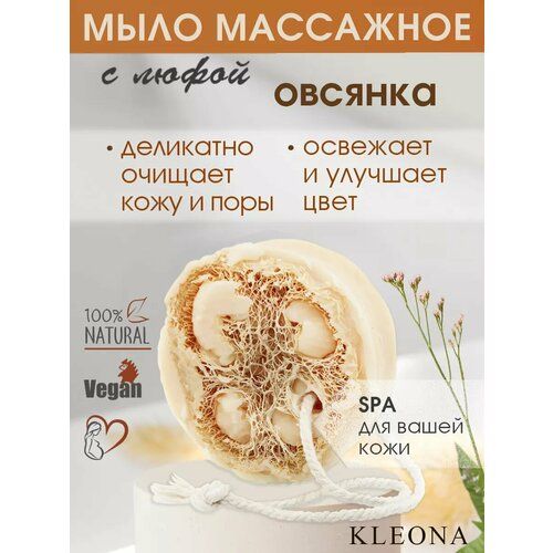 НАЙТИ ВЫГОДНЕЕ - Мыло KLEONA ручной работы, твёрдое с люфой для тела Овсянка