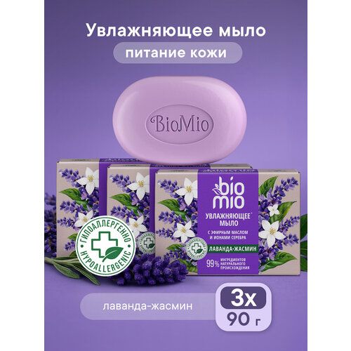 НАЙТИ ВЫГОДНЕЕ - BioMio Натуральное мыло, жасмин и лаванда, 90 г, 3 шт