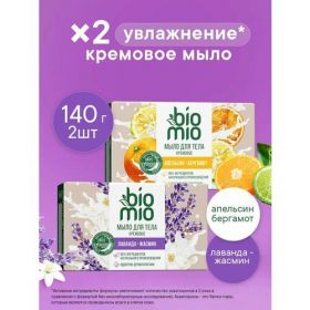 НАЙТИ ВЫГОДНЕЕ - BioMio. Кремовое твердое мыло для тела с эфирным маслом лаванды, апельсина и бергамота, 140 г, 2 шт