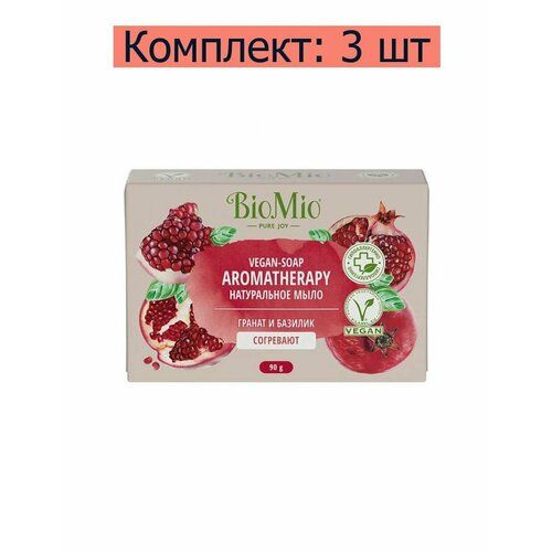 НАЙТИ ВЫГОДНЕЕ - Мыло натуральное BioMio Vegan-Soap Aromatherapy Гранат и базилик, 90 г, 3 шт