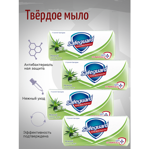 НАЙТИ ВЫГОДНЕЕ - Safeguard Твёрдое мыло Нежный уход с алоэ вера, 90г 4шт