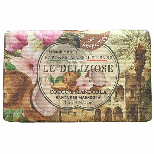 Мыло Nesti Dante LE DELIZIOSE Кокос и миндаль: наслаждайтесь итальянским качеством и ароматом.