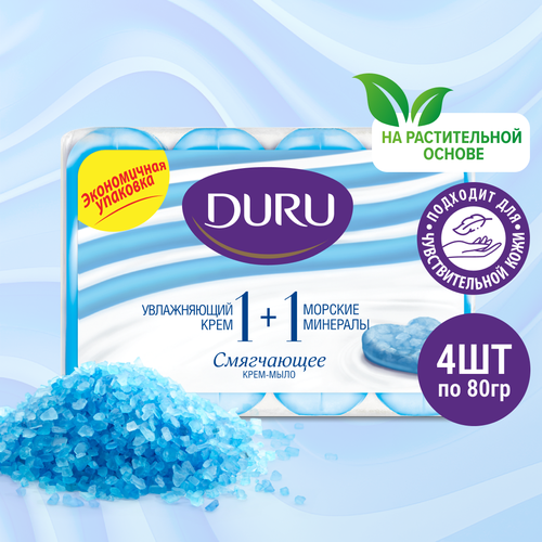 НАЙТИ ВЫГОДНЕЕ - DURU Крем-мыло кусковое Soft sensations 1+1 Морские минералы морские минералы, 4 шт., 80 г
