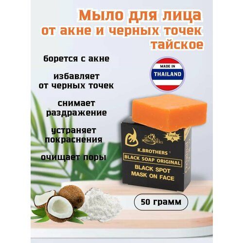 НАЙТИ ВЫГОДНЕЕ - Тайское мыло K.Brothers, для лица, от прыщей, черных точек, цитрусовый аромат, 50 грамм
