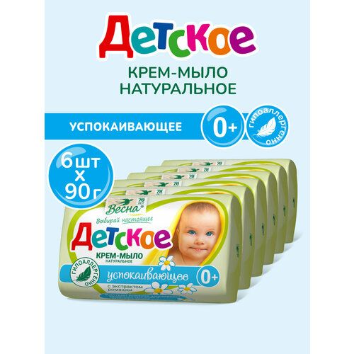 НАЙТИ ВЫГОДНЕЕ - Детское крем-мыло успокаивающее Весна твердое с экстрактом ромашки 6х90г