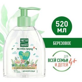 НАЙТИ ВЫГОДНЕЕ - Чистая Линия жидкое мыло для всей семьи березовое, на 100% натуральной основе, для детей 4+ лет 520 мл
