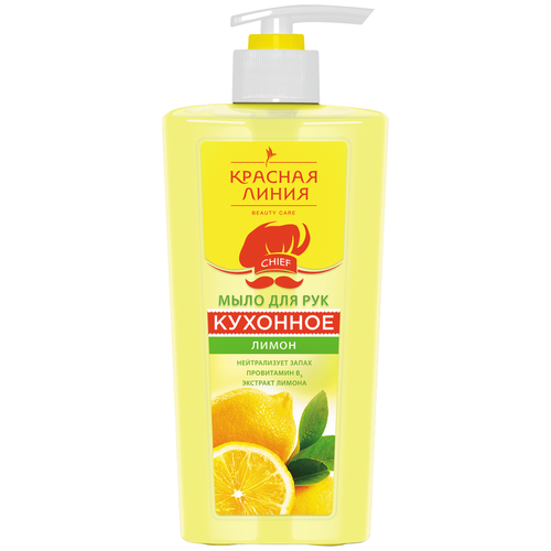 Жидкое мыло для кухни Красная Линия с ароматом Лимона обладает эффектом 2в1: оно бережно очищает кожу, устраняя запахи, а также укрепляет и увлажняет кожу рук, делая ее гладкой и мягкой. Комплексный эффект обеспечивается сбалансированным составом мыла: - Лимонный экстракт нейтрализует сильные запахи (рыбы, мяса, лука, чеснока и других), а также оказывает антибактериальное действие. - Витаминный комплекс обеспечивает мягкость и гладкость кожи, улучшая способность клеток эффективно удерживать влагу. - Заживляющий комплекс ускоряет процессы регенерации кожи, способствуя выработке белков коллагена и эластина. Мыло с легкой ароматной отдушкой прекрасно пенится, легко справляется с загрязнениями и экономно расходуется. Оставляя на коже ощущение чистоты и мягкости после каждого применения, мыло непременно станет вашим прекрасным помощником на пути к ухоженным и нежным рукам