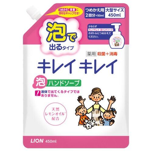 LION Kirei Kirei Пенное мыло для рук с ароматом цитрусовых фруктов, запасной блок, 450 мл.