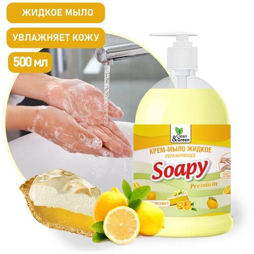 НАЙТИ ВЫГОДНЕЕ - Крем-мыло жидкое Soapy Clean&Green (бисквит, увлажняющее с дозатором), 500 мл, CG8110
