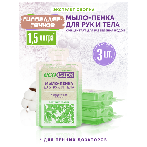 НАЙТИ ВЫГОДНЕЕ - Жидкое мыло-пенка, для рук и тела, аромат хлопка, концентрат в капсулах, EcoCaps, ЭкоКапс, набор 3х50 мл.