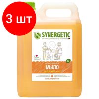 НАЙТИ ВЫГОДНЕЕ - Комплект 3 шт, Мыло жидкое Synergetic Миндальное молочко, канистра, 5л