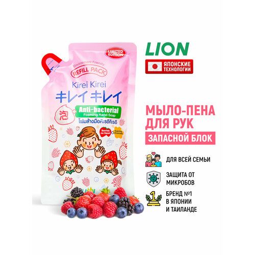 НАЙТИ ВЫГОДНЕЕ - LION Мыло-пена для рук Kirei Kirei Ягодный микс антибактериальное / Жидкое пенное мыло, мягкая упаковка (запасной сменный блок) - 200 мл